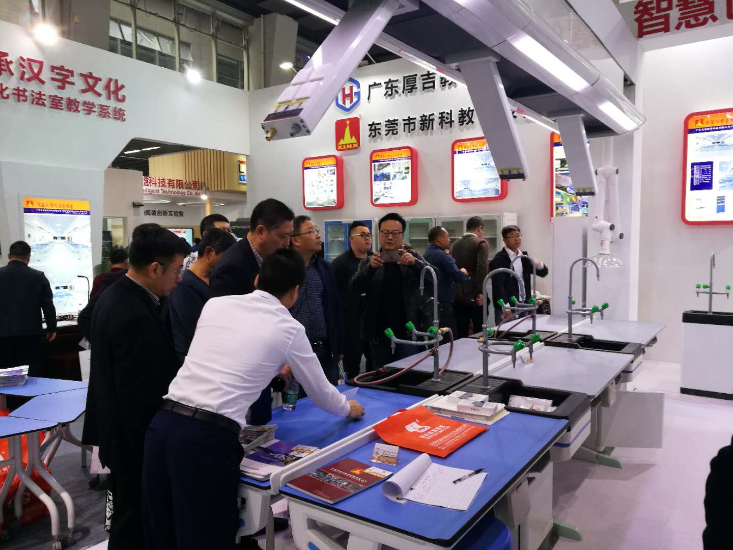 3天里,新科的展位迎來送往了無數客戶,我們對工藝精益求精的專注,用我們的誠信、創新、品質、服務對客戶全面盡責,和長期的信譽累積使新科成為展館焦點之一。絡繹不絕的參觀者里不乏教育局和各學校領導。非常感謝各位領導在百忙之中前來我們展位指導參觀。