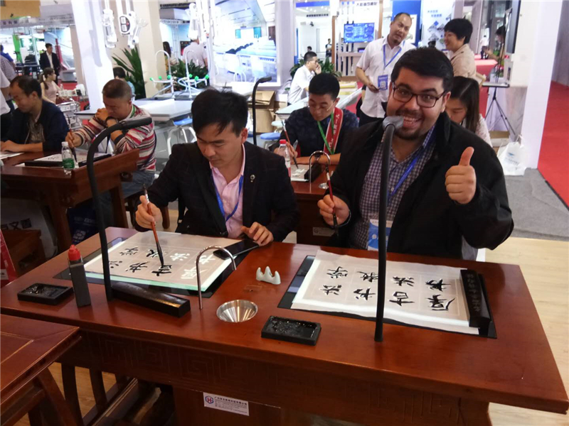參觀客戶(hù)在體驗(yàn)數(shù)字書(shū)法